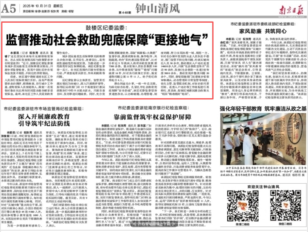 本报讯(记者 祝东秀 通讯员 王睿)“这位居民本该每月足额领取低保金,怎么实际发放情况却与政策要求存在明显差异?”近日,鼓楼区纪委监委聚焦城乡居民最低生活保障落实情况,开展专项监督检查,发现个别社区存在低保金发放不规范、不到位的异常情况。